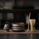 apanisches Keramik Matcha-Set | 6-teiliges Matcha Starter Kit | Schale + Bambusbesen (Chasen) + Halter + Bambuslöffel (Chashaku) + Sieb